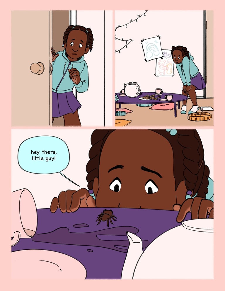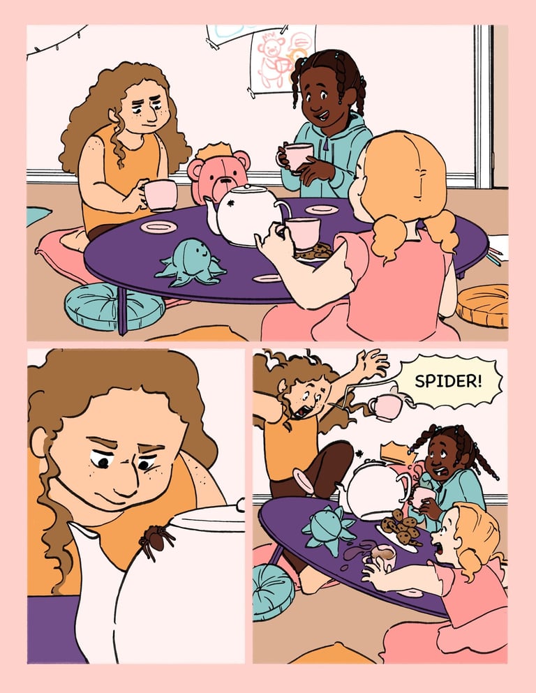 Brianna, Mache, and Charlotte's tea party gets crashed by a spider!